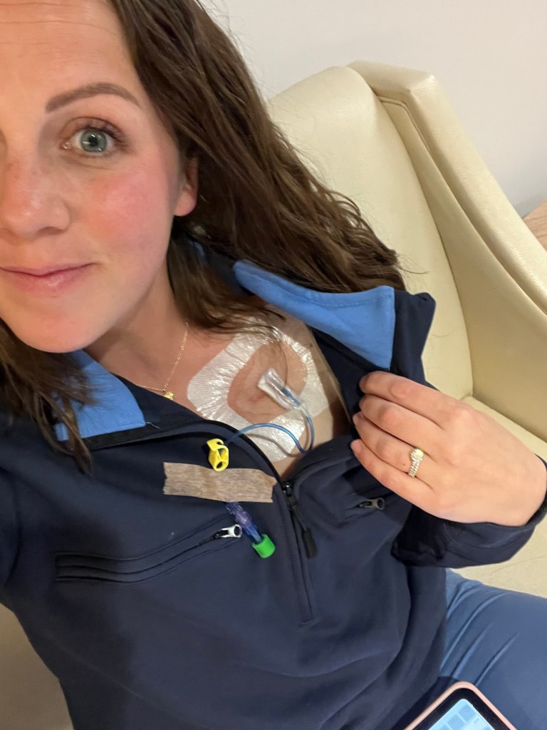 Around 12PM… I woke up startled… my heart was pounding out of my chest. I quickly looked at the monitors and my heart rate was in the 160-170s, my BP was elevated and my EKG looked abnormal… SHIT! “Jamie get help NOW”! “Kelly it’s OK, you’re OK”, “No.. I’m not”. People started piling into the room. I started feeling short of breath… and short of breath turned quickly into not being able to breathe gasping for air. My throat felt like it was closing… As I’m typing this tears are falling…. It was the scariest moment of my entire life. I thought this was it. This is how I’m going to die. They quickly put an oxygen mask on my face. I held it tight and closed my eyes. I slowly was able to breathe again. I was terrified… what is happening. The ICU doctor came in and I described my symptoms. Everyone just assumed anxiety… I don’t know how many people asked “do you have history of anxiety”. I was pissed… I wanted to scream NO at the top of my lungs!! I was asleep and woke up to these symptoms! Something is wrong!! The ICU doctor quickly ordered a stat CT scan. The doctor said he saw multiple blood clots in my lungs and wanted to start IV Heparin immediately. He said that this would be a long journey and I would need to be on blood thinners for months. He said the clots were probably moving into the lungs when I experienced these symptoms. What the actual F*CK!!! Will it happen again? Are there more clots that are coming? Do I have a large clot in my leg (a DVT) that’s breaking off and traveling to my lungs. It’s moments like these where I wish I wasn’t a nurse. I wish I didn’t know so much. That clots are life threatening and starting IV Heparin right after a major surgery is a huge bleeding risk. I felt hopeless. The next few hours were an absolute blur. My husband could tell the story better than me. I was TERRIFIED. The nurse was about to start the IV Heparin when there was talk about how the radiologist read the results and felt like the “clots” were artifact. COMMON GUYS! REALLY?! There was a team of like 5 doctors so really confusing of who said what. But this particular ICU doctor should not have read the results!! The radiologist requested a second CT scan but this time he wanted me to raise my arms over my head (something I was not supposed to do after surgery but was willing to go through the pain to get answers). I remember kissing Jamie goodbye as they took me away for the 2nd CT scan. I waved to my Mom, Dad and Sister who were in the waiting room… I told them I was OK (I was not OK). I remember it being super painful lying on the board flat with my arms over my head. My stomach felt so tight and I thought my abdominal incision was going to rip open. I prayed to God… I asked him to send down my angels (my angels are my 4 Grandparents and my Grandpa… who is Jamies Grandpa but he always felt like mine too). I have a handful of other angels I thought of in that moment. I talked to God the entire time begging for him to keep me safe. After the 2nd CT Jamie, my mom, dad and sister were all in the room with me. I was so scared my heart was going to pound out of my chest and I would stop breathing again. I asked that I could just be with Jamie. I just needed the least stimuli as possible to keep me calm. The ICU doctor who told me I had clots never showed his face the remainder of the night. It was another doctor who came in (I think the attending doctor) and said the radiologist confirmed on the 2nd CT that there are no clots in your lungs. OMG… what a relief. I was so happy but honestly SO UPSET. That doctor was about to treat me for blood clots that didn’t exist! Which would have been so dangerous! Breathe Kelly Breathe…