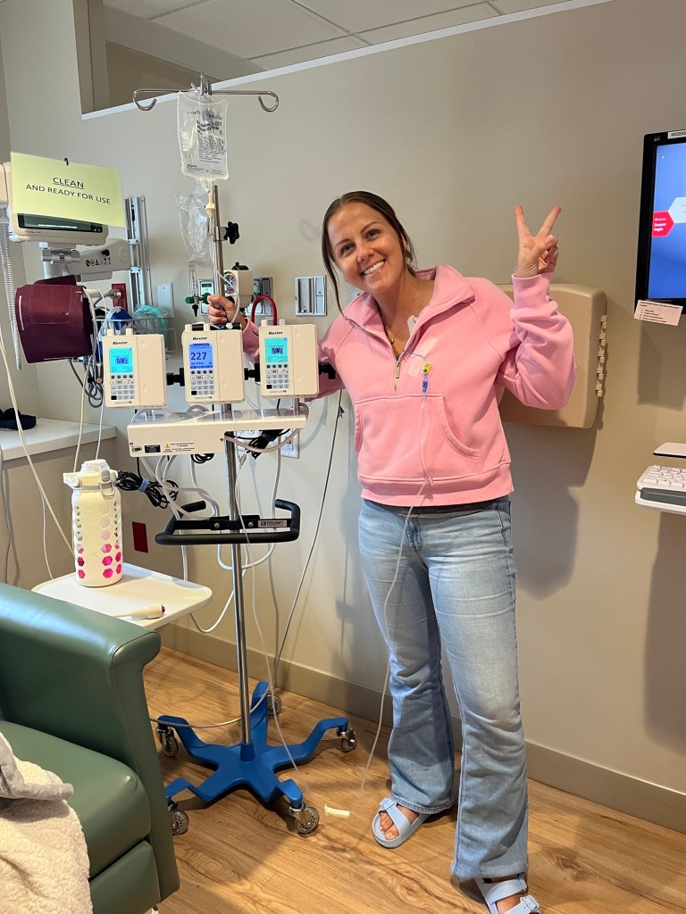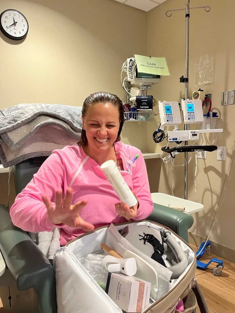 I still wanted answers… why is this happening! I had another episode early in the morning and another one around lunch time. They thought possibly a fluid shift and maybe dehydration. They ordered extra fluids which seemed to help. My Magnesium level was also low and they gave me a supplement IV dose. Most of the nurses were phenomenal! One nurse named Rachel had me breathe in lavender, played music and did deep breaths with me while I had an episode… my heart rate never went over the 120’s. Things were slowly getting better. My surgeon Kari came to visit me. It was SO GOOD to see her! I asked how surgery went and she said she didn’t see any cancer travel to the muscle. She said she did an extensive bilateral mastectomy. She said if it looked like breast tissue it was removed. She said she also grabbed some muscle just to be sure! My reconstruction surgeon also came in to see me. I talked about my episode last night (assuming he knew because he was on-call). He said no one contacted him! He was definitely upset hearing this news and said he would talk to the staff. Im pretty pissed at this point. They said they talked to him last night and got the OK to start IV heparin if needed… got the OK to raise my arms over my head. UGH! LIES! On a good note Kari and Dr. Nigriny said everything looked great! I will say they are both worth this shitshow of an ICU experience….